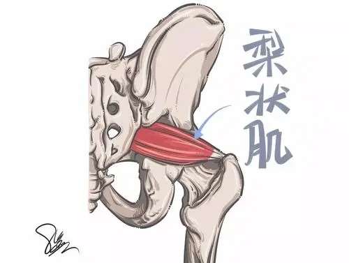 (3)患側臀部常有不同程度肌肉萎縮,梨狀肌走行部位??捎|到條索狀硬化肌束,