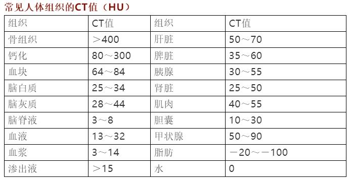 常見人體組織的CT值(HU)