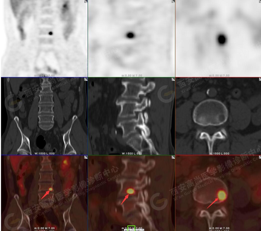 5.腰4椎體左側(cè)緣溶骨性骨質(zhì)破壞,F(xiàn)DG代謝異常增高,考慮骨轉(zhuǎn)移瘤。