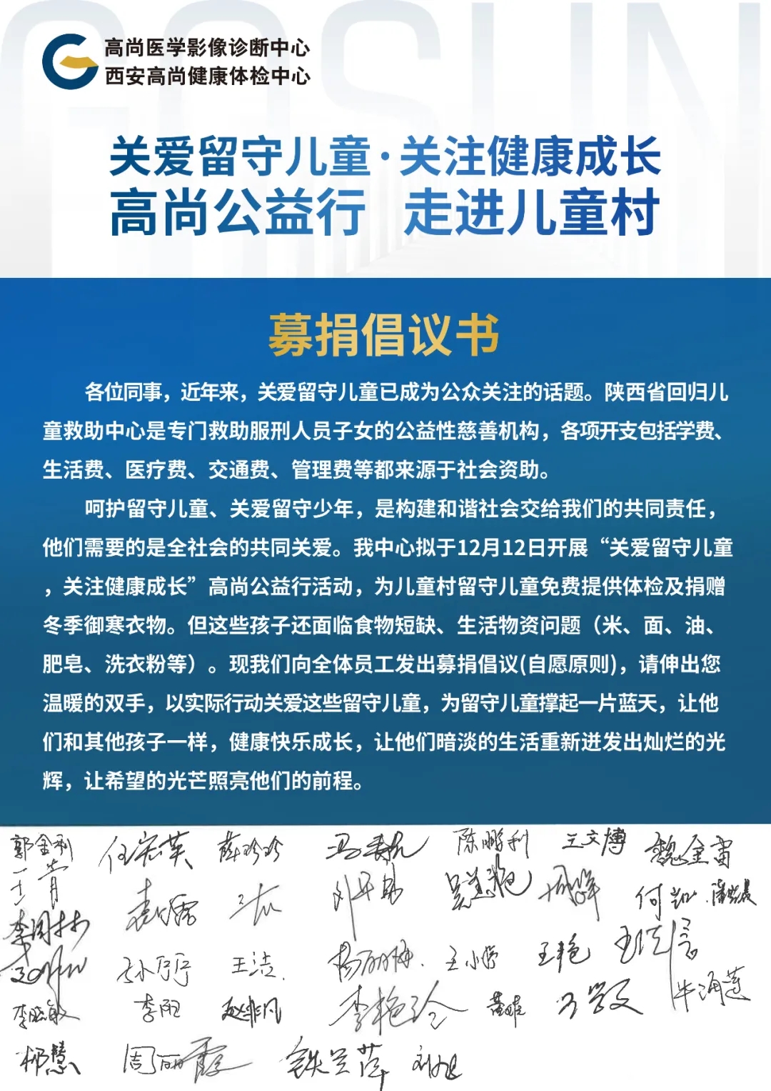 2020年12月12日,西安高尚醫(yī)學(xué)影像診斷中心、西安高尚健康體檢中心(以下簡稱高尚醫(yī)學(xué)影像)一行前往陜西回歸兒童救助中心開展“關(guān)愛留守兒童,關(guān)注健康成長”公益送溫暖活動,給孩子們提供免費健康體檢并送去冬季御寒衣物等生活物資。