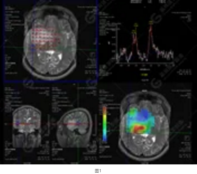 患者男,25歲,因“頭暈、頭痛1月余”來(lái)廣東高尚醫(yī)學(xué)影像診斷中心行顱腦MR平掃、增強(qiáng)及腦功能學(xué)檢查波譜(MRS)、擴(kuò)散張量成像(DTI)檢查。既往外院檢查提示大腦右側(cè)占位性病變。
